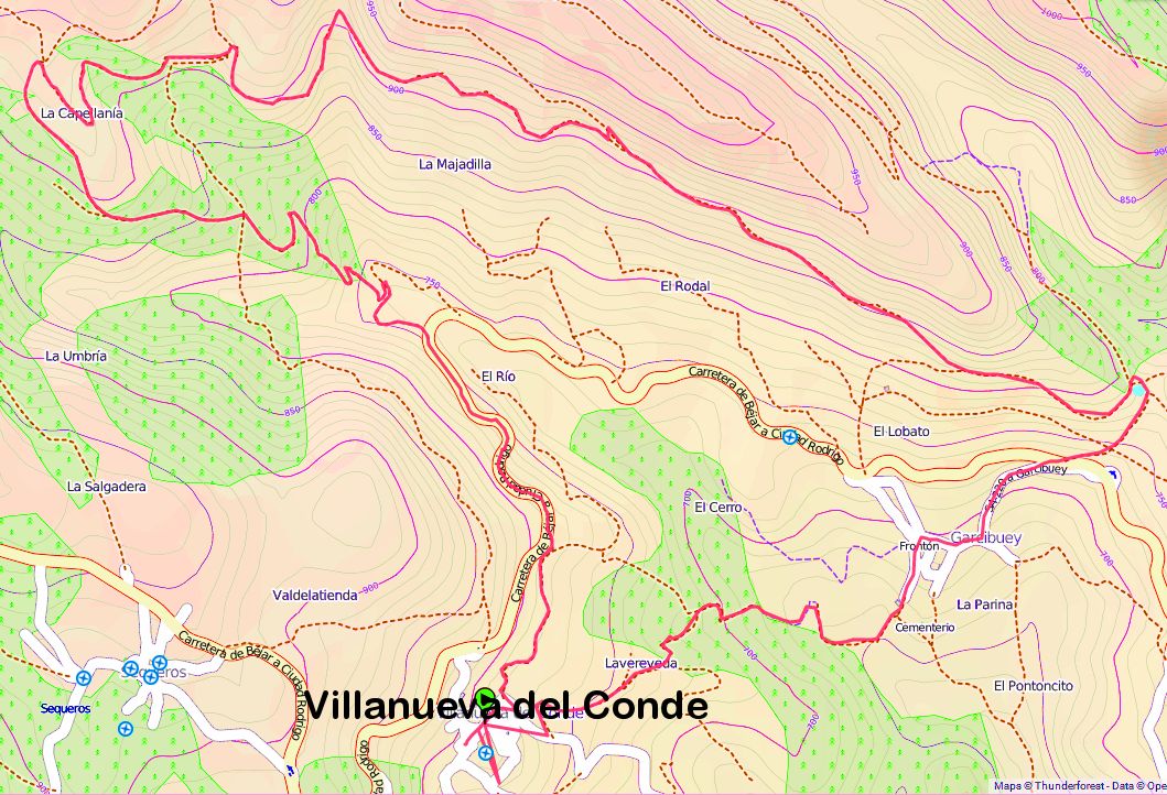 Accederemos a Garcibuey, subida al Estanque donde repondremos Fuerzas, continuaremos por la calzada del Avanico, y pasaremos al despoblado de Cargamanco, después a la Raya de San Miguel, bajando por Los Huelmos hasta el Chiringuito del rio accedemos por la carretera como 1 Km, nos desviamos por El Tesito, Fuente del Pilar y llegada a la Plaza Obispo Marijuan.